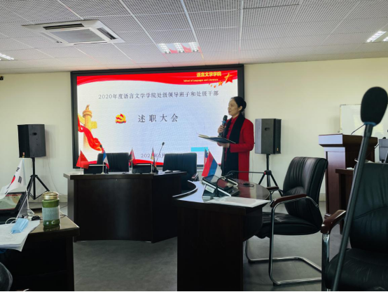 1月18日下午,公司在雨母校区崇礼楼406模拟联合国会议厅召开2020年处级干部述职大会。本次大会由党委书记龙志坚主持,全体教职员工和员工代表参加了会议。组织部黄海蓉科长出席述职大会。