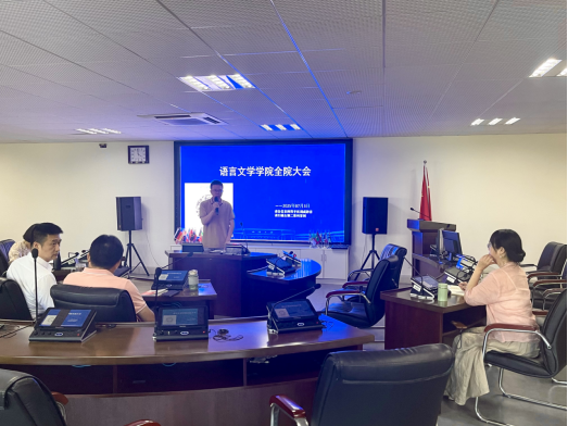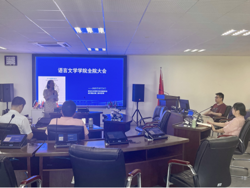 公司党委书记龙志坚最后发表讲话,呼吁全院教职工扎实奋斗,努力提升教学与科研能力,多思考文科公司教师的发展方向,暑假期间,安全第一。