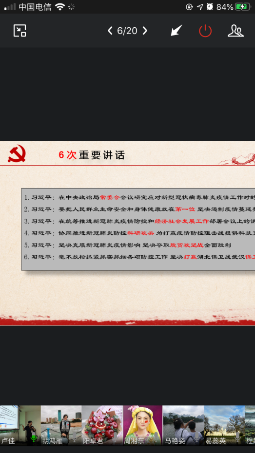 本次学习的主题是“深入学习习近平总书记关于疫情防控工作的重要讲话和指示批示精神, 坚决打赢疫情防控的人民战争、总体战、阻击战。”通过ppt展示,卢佳与大家一起梳理和学习了疫情发生以来中央政治局召开的七次大会、习近平主席关于疫情防控工作的六次讲话和习近平主席回复青年群体的两次信件精神。学习之后,大家踊跃发言:大家一方面感慨于国难当头全国人民万众一心,在中央领导下坚持“全国一盘棋”,坚定信念,攻坚克难的团结精神和拼搏勇气;另一方面也为疫情中的南华人在危急时刻挺身而出,或奔赴疫情一线、或慷慨解囊,不能开学的前提下依然停课不停学,积极探索线上教育方式而感到无比自豪。大家一致表示,要毫不放松抓紧抓实抓细疫情防控工作的同时,紧盯公司年度目标任务真抓实干,以实干实绩推进公司公司各项工作科学高效地运行。