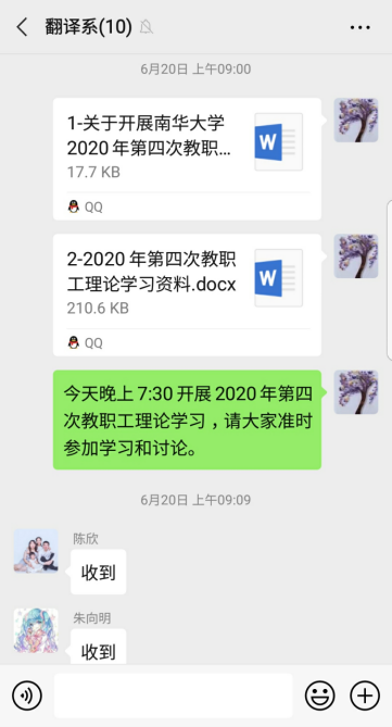 根据公司的统一安排部署,翻译系于6月20日在微信群开展了2020年第四次教职工理论学习,翻译系全体教职工参加了学习和讨论。本次学习的主题是“深入学习习近平总书记关于人才及人才工作的重要论述,实施人才强校战略,深化教师队伍建设改革,全面提升教师队伍质量。”首先,大家深入学习了习近平总书记在中央政治局第二十次集体学习时以及主持专家学者座谈会时的重要讲话、《中华人民共和国民法典》、《中共中央国务院关于全面深化新时代教师队伍建设改革的意见》、《新时代高校教师职业行为十项准则》、《关于高校教师师德失范行为处理的指导意见》、《beat365手机版官网入口高层次人才队伍建设实施办法》、《beat365手机版官网入口博士引进实施办法》、《充分认识颁布实施民法典重大意义 依法更好保障人民合法权益》等。然后,大家结合实际进行了热烈的讨论。大家一致认为,教师是教育发展的第一资源,是国家富强、民族振兴、人民幸福的重要基石,教师队伍建设具有重要的意义,要大力实施人才强校战略,深化教师队伍建设改革,全面提升教师队伍质量,加速推进高水平大学建设。