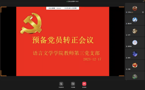 12月17日,beat365手机版官网入口教师第三党支部召开预备党员转正会议。会议由党支部书记王东山主持,支部全体成员参加会议。