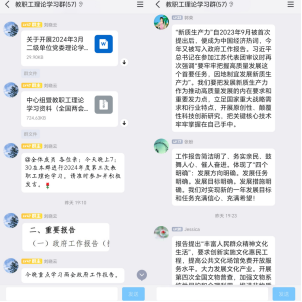 政府工作报告提出,深入实施科教兴国战略,为高质量发展提供基础支撑。强调要加快形成支持全面创新的基础制度,着力“培育创新文化,弘扬科学家精神,涵养优良学风”,为教育强国建设背景下加强和深化老员工创新教育、培养高素质创新人才指明了方向。老师们纷纷表示作为高校教师,我们要深入学习和把握报告精神,把准高等教育综合改革的目标和方向,加强高质量教育体系建设,为加快发展新质生产力贡献高教力量。