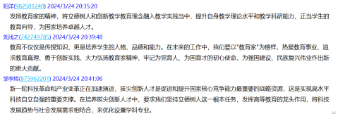 理论学习后,大家围绕高校教师如何发展新质生产力展开热烈讨论,一致认为新一轮科技革命和产业变革正在加速演进,拔尖创新人才是促进和提升国家核心竞争能力最重要的战略资源。在培养拔尖创新人才中,要求我们坚持立德树人这一根本任务,发挥高等教育的龙头作用。教师肩负科教兴国重任,为国之所需培育人才,才能完成时代所赋予我们的教育使命。