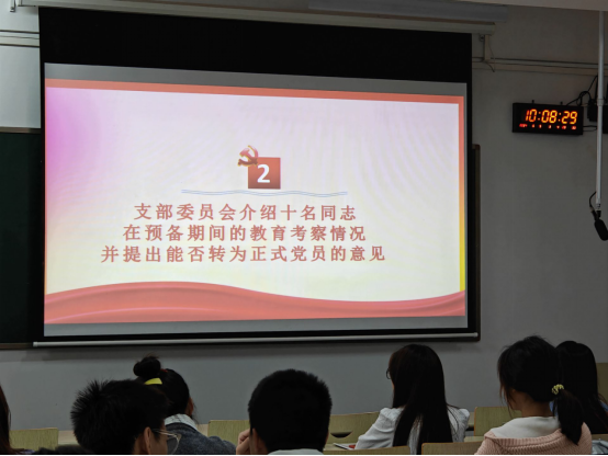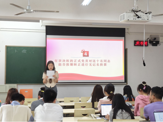 其次是支委介绍相关考察情况以及党员进行无记名投票表决,党支部通过了陈立洋等10名同志的转正申请,并表示了热烈的祝贺。