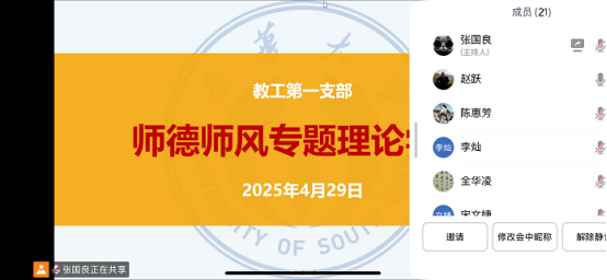 为进一步加强师德师风建设,提升教师的职业素养和道德水平,促进员工健康成长、全面发展,beat365手机版官网入口第一教工党支部于2025年4月29日晚线上开展集中学习。