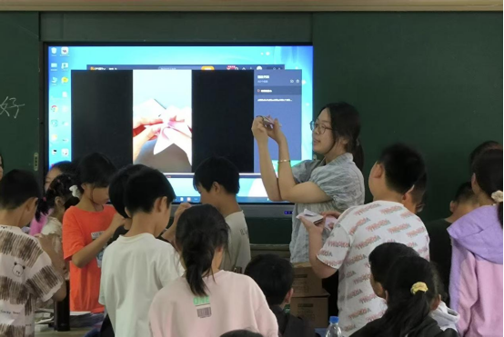 此次主题党日活动突出“激发好奇心,培养创造力”的主题。活动前期,教师第三党支部教师指导40名老员工为孩子们准备了旨在培养创造性思维和动手实践能力的课程。反复设计课堂形式,修改课堂教学内容。教学过程中,支部教师全程观摩指导老员工的课堂教学。老员工循循善诱,激发好奇心。孩子们冥思苦想,积极互动。手工课上,老员工与孩子们一起做可爱的手工信封和立体贺卡。画笔在纸上来回跳跃,彩纸在手中翻飞折叠,每一次动手操作,都是创意的活水在涌动。在教师指导下,老员工们还为三面实验公司不同年龄层次的员工准备了国学、数学、英语、心理、美术、音乐等极具启发性和娱乐性的课程。