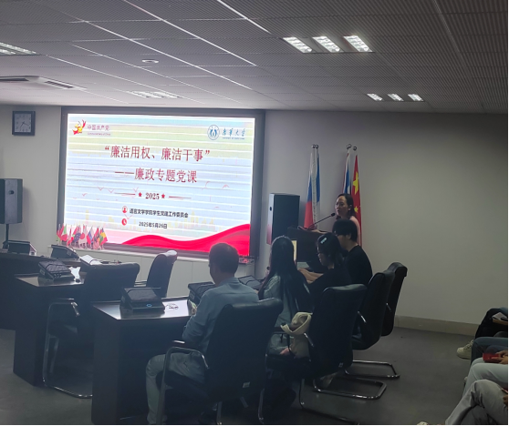 会议最后,周艳玲发表讲话。她首先肯定了本次主题党课的学习成效,并强调,廉洁自律是党员的政治底色,关乎党的执政根基与事业兴衰。周艳玲指出,“廉洁用权”是对权力本质的深刻认知,党员需始终牢记权力来自人民、必须服务人民,杜绝任何形式的权力滥用,同时,希望全体党员以此次党课为新起点,把廉洁意识转化为行动自觉,既要做廉洁自律的“践行者”,主动接受监督、常思贪欲之害;也要做廉洁文化的“传播者”,通过不同方式,向身边同学传递廉洁理念。她要求大家保持“赶考”清醒,以钉钉子精神守好纪律红线,将个人成长融入党和国家事业,以清正廉洁的政治品格和担当作为的实际行动,为公司事业发展和民族复兴伟业贡献青春力量。