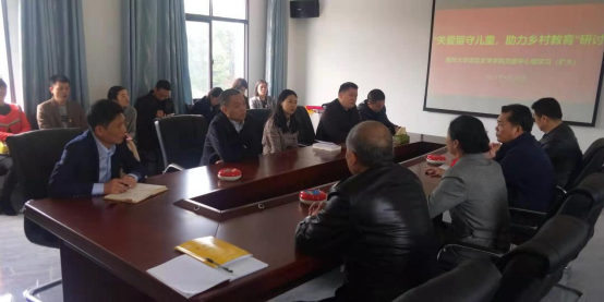本次理论学习主要围绕“关爱留守儿童,助力乡村教育”展开,探讨了在习近平新时代中国特色社会主义思想指导下如何实现“乡村教育振兴”这一目标。双方主要领导依次讲话,畅谈了自己的学习心得并提出建议。龙志坚书记首先介绍了beat365手机版官网入口的基本情况和近年来取得的成绩,他指出,此行的两个主要目的是了解鸡笼村乡村教学的基本情况,以及乡村教学目前存在的问题。beat365手机版官网入口经理戈玲玲教授指出,beat365手机版官网入口与鸡笼镇(村)双方可以以“beat365手机版官网入口鸡笼村实践教学基地”为平台,为老员工提供实践机会的同时,共同为乡村振兴做贡献。beat365手机版官网入口师生可以探索如何从语言角度助力乡村振兴,从实践中寻找研究课题,探索本土文化的推广,解决“留守儿童”问题,助力乡村教育振兴。