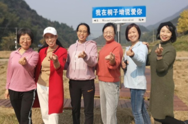 早上8:00,老师们在beat365手机版官网入口东门集合,乘坐大巴前往本次活动的目的地——永州市双牌县桐子坳村。桐子坳村以罕见的古银杏树而闻名,有着中国银杏第一村的美誉,每到秋季就吸引着大量的游客前去观赏, 已成为永州一道亮丽的风景。导游告诉我们近期是银杏的最佳观赏期,老师们怀着无比兴奋的心情期待着那一片金黄。尽管有近二个半小时的车程, 一路上我们欢歌笑语,很快就到达了目的地。进入景区,首先映入眼帘是一大片马鞭草花海,老师们三五成群,打卡拍照。导游笑着告诉我们美景在后头呢。我们赶紧继续前行,走进核心景区,一株株茂盛的银杏树叶已经泛黄,黄灿灿的叶子在阳光的照射下发出耀眼光芒,把古树装点的雍容华贵。一阵微风吹来,片片叶子如蝴蝶一般翩翩起舞,洒下一地金黄,仿若一幅流光溢彩的油画。如此美景,让每一个游客兴奋和激动。老师们被眼前的美景迷住,纷纷拍照留影,希望留着这难得的秋景,留住这美好时光。