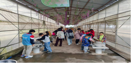 除了田间劳作,农业科普与传统技艺体验同样精彩纷呈。走进现代化温室大棚,仿佛闯入了一个“植物王国”,各类蔬果藤蔓交错、绿意盎然。专业讲解员细致讲解着无土栽培、滴灌技术、病虫害绿色防控等农业知识,从种子发芽到开花结果,从环境调控到营养供给,一个个专业知识点在生动的实景展示中变得通俗易懂,让师生们直观感受到现代农业科技的魅力,拓宽了知识视野。在传统技艺体验区,土砖制作与磨豆浆项目吸引了众人驻足。和泥、填模、脱模,大家分工协作,将湿润的泥土塑造成规整的土砖,在反复揉捏与敲打中,体会古人建房筑屋的辛劳与智慧;石磨旁,大家两两配合,一人推磨、一人添豆,看着乳白色的豆浆缓缓渗出,香气弥漫在空气中,简单的动作里满是协作的乐趣,也让大家在慢节奏中感受传统生活的烟火气。火龙果种植园里,红彤彤的果实挂在翠绿的藤蔓上,格外诱人。园区工作人员不仅带领大家参观了火龙果的生长环境与种植技术,还准备了免费品尝的鲜果,清甜多汁的口感让人回味无穷;若想将这份新鲜带回家,还可按需自费采摘,亲手摘下的果实,更添一份收获的满足。
