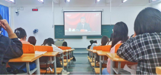 5月10日上午,为庆祝建团一百周年,弘扬积极向上的精神,彰显新一代青年的朝气与活力,beat365手机版官网入口紧跟党的步伐,组织一百余名团学干部、员工党员、共青团员及青年员工代表观看“庆祝中国共产主义青年团成立100周年大会”线上直播。为落实疫情防控常态化要求,百余名代表分别在雨母楼201、302教室隔座观看。