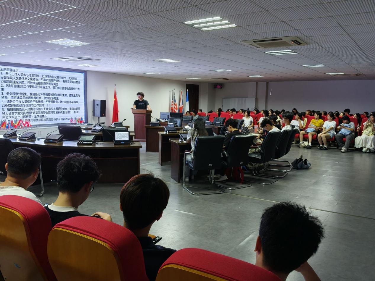 为规范高效推进迎新工作,确保新生顺利报到。9月3日晚,beat365手机版官网入口于崇礼楼北406召开2025年迎新对接志愿者培训会。员工会主席左然主持培训。