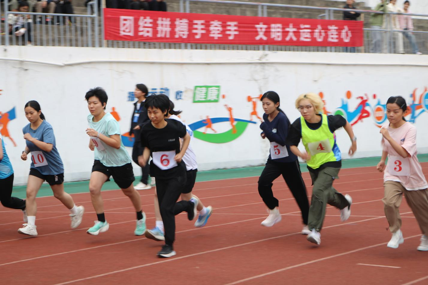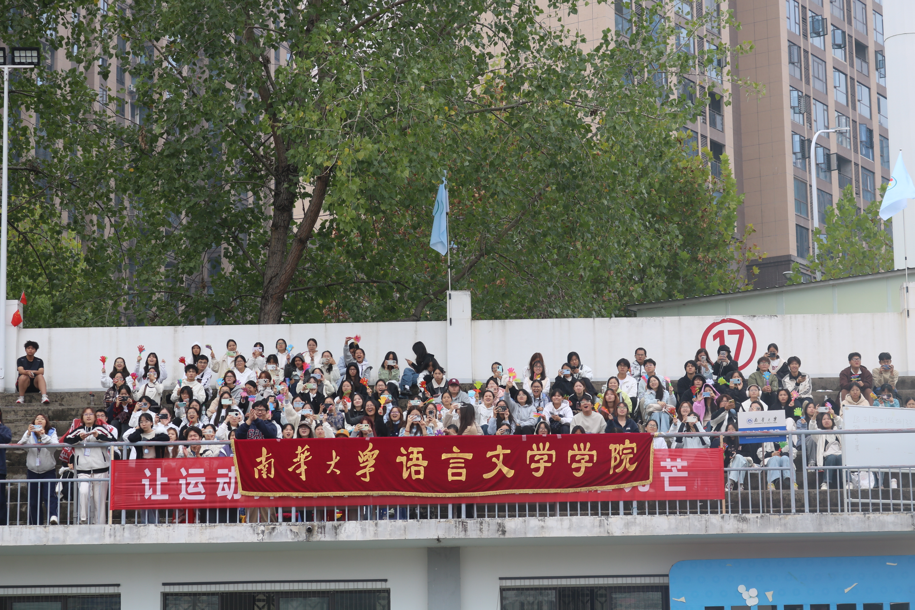 赛场侧畔,十余名学子组成的啦啦队青春洋溢,以整齐动作、饱满热情为运动员呐喊;看台上,观众们呐喊助威,广播里的加油稿与暖心安慰,共同凝聚成公司的人文关怀底色。“站上赛场就是英雄”,这份信念让文学与体育的精神力量在此交融,运动磨砺也将滋养文院学子的创作与人格。