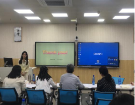 王一鸣老师在中美文化对待老人态度略有不同的背景下,教育员工继承中华民族的传统尊老美德,虽是第一个出场却毫不怯场;左传果老师在五分钟课堂展示中通过前苏联史上因翻译错误导致外交风波的事例,引导员工重视并广泛学习不同国家的语言及文化知识;王青老师解读了罗素的“智慧观”,意在培养员工集体主义意识,孕育超然脱俗的人生态度;瞿亚妮老师声情并茂地讲授希腊长诗《哀希腊》,表达了强国强民的国家意识和民族意识,极富感染力;李琼老师通过耳熟能详的《行路难》和长寿名媛严幼韵的故事诠释了乐观主义精神对于人生的重要性,慷慨激昂却又不失温情;梁心爱老师也通过撒哈拉沙漠历险故事教育员工要直面困难,永不放弃。刘浅之老师通过日语翻译课堂练习强调了员工在翻译过程中既要深入思考翻译视角,也要牢记自身立场的观念,和风细雨中娓娓道来。
