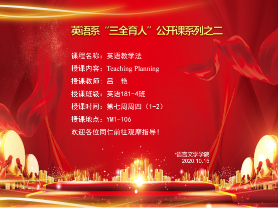 beat365手机版官网入口英语专业核心课程《英语教学法》获批2019年秋季学期校级优质课程,并在2019年秋季学期专业研讨课课程质量综合评价工作中通过考核。为进一步提高教学水平,课程组组织一场思政公开课,以期和同行交流学习。