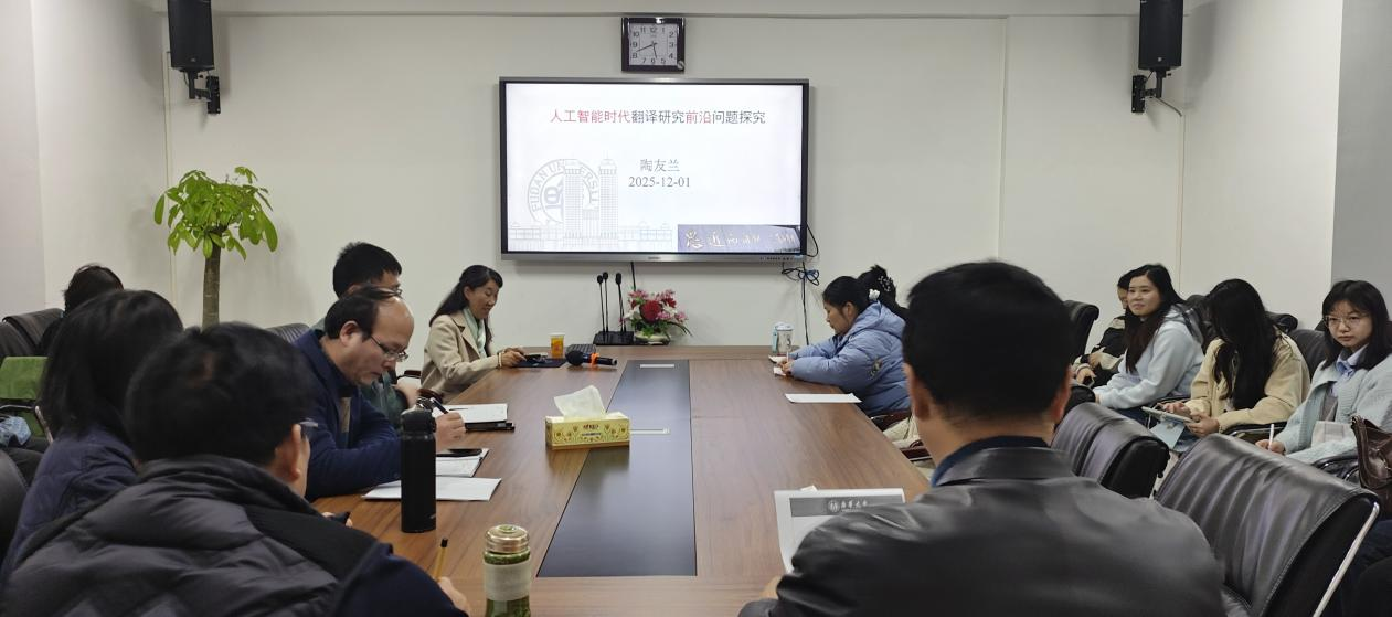 12月1日上午,复旦大学外文公司陶友兰教授应邀莅临公司,在雨母校区崇礼楼410会议室为beat365手机版官网入口师生作题为“人工智能时代翻译研究前沿问题探究”的学术讲座。本次讲座由公司副经理刘彬主持,党委书记龙志坚、副经理肖庚生、李广伟及部分公司骨干教师、研究生代表到场聆听。
