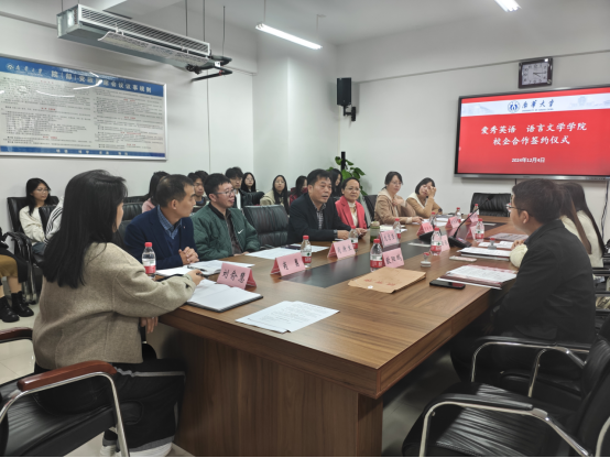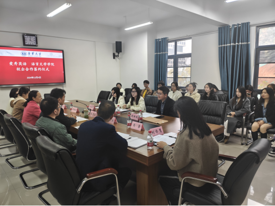 12月4日下午,beat365手机版官网入口与爱秀英语校企合作签约仪式在崇礼楼410会议室召开,本次仪式由公司党委副书记周艳玲主持。爱秀英语华新校区董事长潘田钰、石鼓校区董事长欧阳鹏、银泰校区董事长王亚红、公司党委书记龙志坚、副经理肖庚生、党委委员兼综合办主任赵长渝,学工办主任肖勇,英语系主任邹李炜,团委书记刘俞慧和校企双方20余名师生代表参加会议。