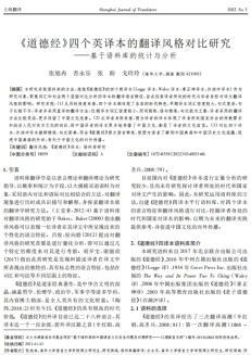 近几年来,公司高度重视公司产品工作,鼓励员工参与科研项目和参加线上线下学术会议,公司产品质量不断提升。近日,公司2020级翻译专业研究生张旭冉以第一作者身份在CSSCI来源期刊《上海翻译》2022年第3期发表学术论文“《道德经》四个英译本的翻译风格对比研究——基于语料库的统计与分析”。该论文的通讯作者为张旭冉的导师、公司戈玲玲教授。
