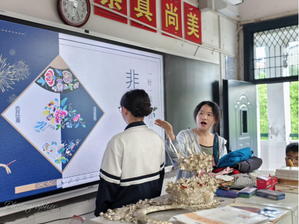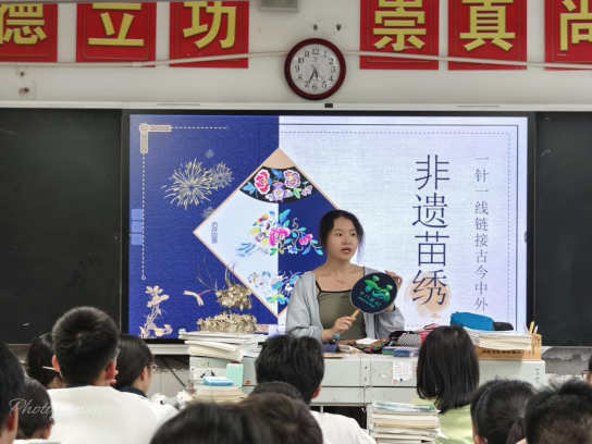 为弘扬优秀传统文化,促进非物质文化遗产的保护和传承,提升青少年群体对我国民族文化的传承保护意识,5月23日,beat365手机版官网入口“灵苗触春”团队赴衡阳市第六中学开展“苗绣”非遗文化宣讲活动。