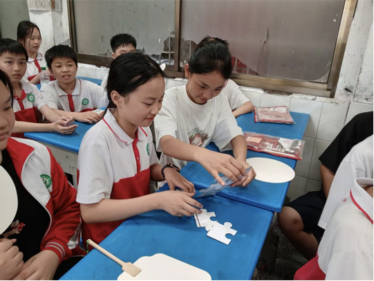 活动伊始,“心理拼图”环节点燃了孩子们的热情。大家分组协作,共同面对彩色拼图的挑战。在寻找正确位置、沟通衔接图案的过程中,孩子们体会到耐心沟通与团队合作的力量。当零散的碎片最终汇聚成完整画面,教室里响起欢呼。这让他们领悟到,成长中的困惑如同拼图,终将在努力下成为独特风景。