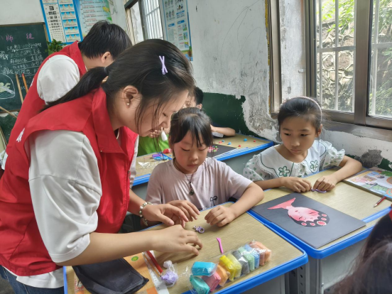 “以美润心,以艺载道。”近日,beat365手机版官网入口志愿服务队支教组,在衡南县岐山镇鸡笼村开展“墨染寻迹,纸艺造物”主题三下乡活动,志愿团队将水拓画、黏土画与纸浆画等非遗技艺与创意手工相融合,借助此次活动机遇将其带入乡村课堂。