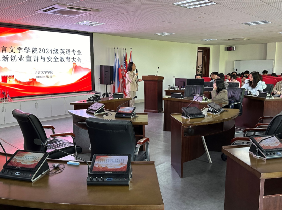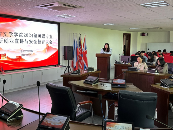 4月3日中午,为加强同学们的安全意识、帮助同学们了解创新创业及公司相关政策,beat365手机版官网入口于崇礼楼北406召开了公司2024级英语专业创新创业宣讲与安全教育大会。公司党委副书记周艳玲,24级英语专业辅导员郑倩倩、24级全体英语专业员工参加会议。