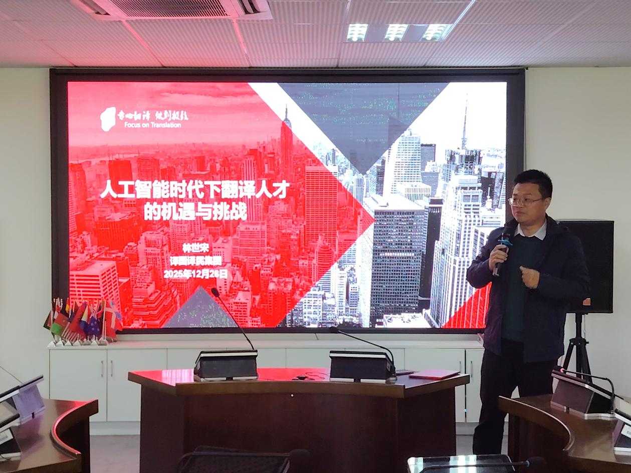 12月26日上午,beat365手机版官网入口于崇礼楼北406开展“人工智能时代下翻译人才的机遇与挑战”主题讲座,此次讲座特邀译国译民集团董事长林世宋先生,公司党委书记龙志坚及数名师生与会。