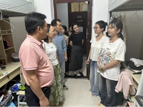 为全面了解毕业生动态,传递公司关怀,5月27日晚,公司党委书记龙志坚、党委副书记周艳玲、21级辅导员兼学工办主任肖勇、24级辅导员刘奇峰、21级辅导员兼就业专干欧阳梦一行走访毕业生宿舍,重点就毕业论文完成情况及未来就业进行暖心指导。