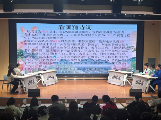 比赛分为团体赛与个人赛。团体赛包含趣味选择题、猜人名、看图猜诗词、诗中藏成语、诗中含反义词等五个环节;个人赛则以飞花令为主,加以反义词飞花令等更加新颖的形式为辅。
