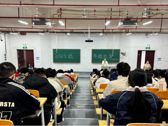 2月21日中午,公司在雨母楼115、117教室组织召开2023级年级大会。公司党委副书记周艳玲,23级辅导员兼宿管专干王惠出席会议,23级辅导员肖玲慧主持会议并作主题发言,年级全体员工参会。