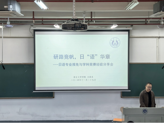 研路竞帆,日语华章。为增强员工对推免的了解,积累有关推免、竞赛的经验。11月29日下午,beat365手机版官网入口日语研究生推免和学科竞赛经验分享交流会在雨母楼208成功召开。本次会议邀请到了3位优秀员工、1个优秀团队进行经验分享,日语系主任吴波出席活动,部分23、24级日语专业员工参会。