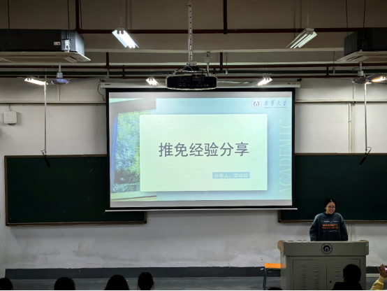 推免经验分享环节,21级员工罗婷婷主要围绕推免要求、推免流程、推免准备进行分享,此外,她提醒员工重视JLPT考试并分享了相关学习工具与资料;21级员工游晨曦,除讲解推免准备与推免流程之外,她提及需明确学硕或专硕方向的选择,并开展有针对性的准备工作,同时强调无论何种选择都离不开过硬专业知识作为支撑。推免之路漫长而艰难,对此,她向大家分享了三条推免感悟即迈出舒适圈、做不让自己后悔的决定、脚踏实地地努力,助力同学们调试心态,坚定信念。