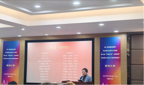 11月16日至17日,第二届湖南省高校员工跨文化能力大赛(线下复赛和决赛)在湖南工商大学顺利举行。本次大赛由湖南省教育厅主办,湖南工商大学承办,湖南师范大学和上海外语教育出版社协办。大赛以“坚定文化自信、增进国际理解”为主题,致力于考察参赛选手在多元文化和跨文化语境下分析问题和解决问题的能力。