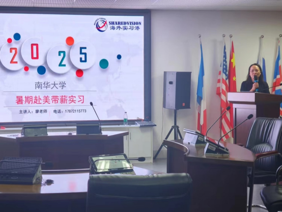 为扩展员工海外学习渠道,促进中美国际友好交流, 10月11日晚,公司邀请上海市出入境服务中心、海外实习港湖南区负责人、beat365手机版官网入口员工廖鹏程进行老员工暑假赴美带薪实习项目(以下简称SWT项目)宣讲,宣讲会在崇礼楼406会议室举行。公司党委副书记周艳玲、辅导员肖玲慧、欧阳梦、郑倩倩老师以及130余名员工参加宣讲。