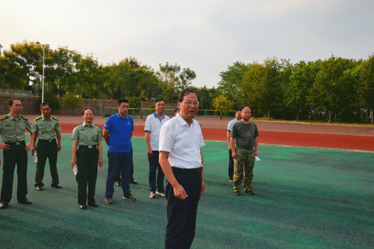 9月14日下午,beat365手机版官网入口党委书记高山在相关部门负责同志的陪同下,深入beat365手机版官网入口2024级新生军训现场,看望慰问正在雨母校区训练场进行军训的员工、带训教官及各连队指导员。