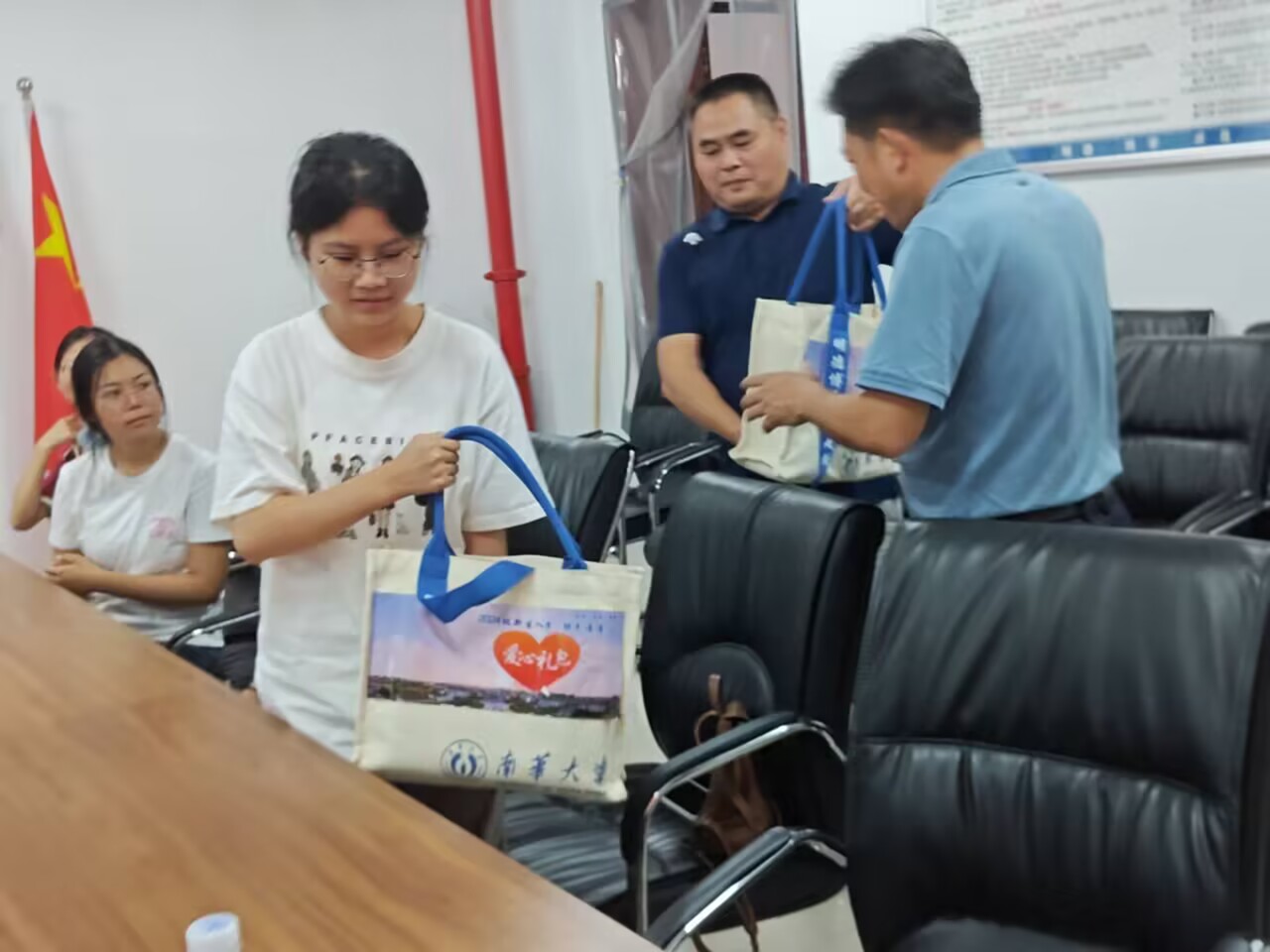 活动最后,公司领导和老师为同学们送上公司的爱心资助大礼包。此次座谈会将激励着每一位同学努力前行,将这份人文精神和家国情怀带向未来的学习生活,继续在各自的专业里奋发向上、奋勇争先。