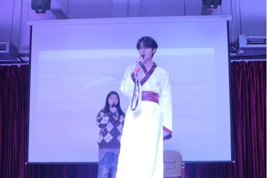 12月10日晚,公司在雨母校区笃行园食堂四楼举行“语”你同行语言艺术团成立大会暨“楚魂·有言”演出,传承中华文化,讲好中国故事。本次参会嘉宾有公司党委副书记徐婵娟,语艺团指导老师王蓓,院团委书记刘俞慧,23级辅导员肖玲慧、部分语院学子和来自校外的古诗词爱好者。活动由学社联副主席兼语艺团团长李煊颖主持,语言艺术团主办。
