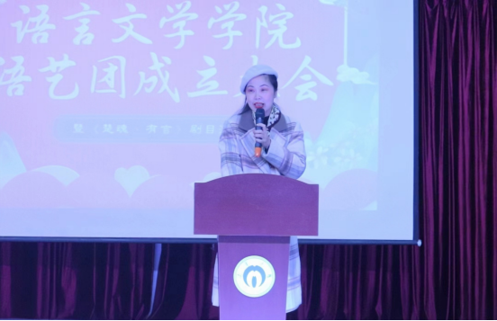 活动伊始,徐婵娟致辞,介绍语艺团培养能说善道会演的复合型人才的初心,感谢语艺团老师们的指导以及语艺团同学们的不懈努力,对演出致以热切的期待。