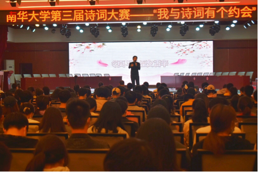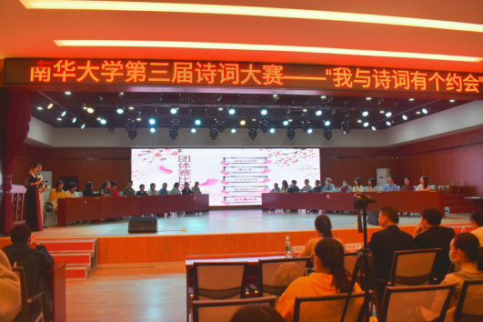 首先由龙志坚致开幕词,他从生活、心理和学识三个方面阐述了诗歌的重要性,并引用“腹有诗书气自华”表达对南华学子殷切的期盼。随后,比赛正式开始。本次决赛分为团体赛与个人赛,团体赛由趣味选择题、猜人名、文字组诗词、看画猜诗词、诗中藏成语五个环节构成,个人赛则以典故飞花令为主要环节。