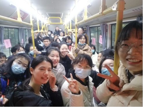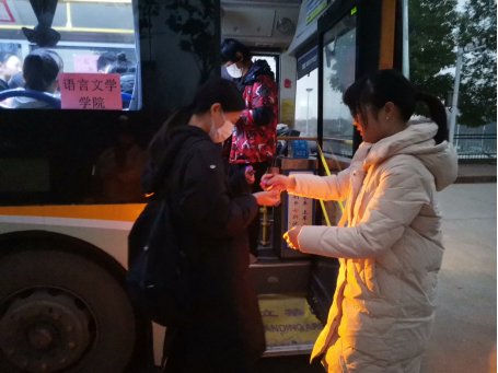 周玲为考研的员工们都精心准备了小礼物,她热情地给每一位员工发放了喜糖和口罩,并给每位考生鼓励与祝福,细心叮嘱他们要遵守考场秩序和防疫要求。员工们惊喜地接过喜糖和口罩,踏上送考专车,公交车上其乐融融。