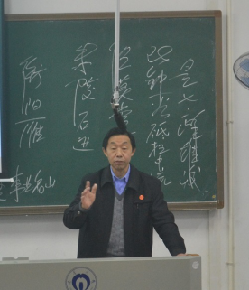 正式开讲之前,熊哲琰在黑板上写下:学贯九流汇此地人文法海,秀冠三湘看群贤事业名山。他介绍,这副对联摘自左宗棠在衡阳石鼓书院的题笔。并提到:衡阳自古以来都是人杰地灵的宝地,作为衡阳的南华学子,更要坚定理想信念,提升自身能力。