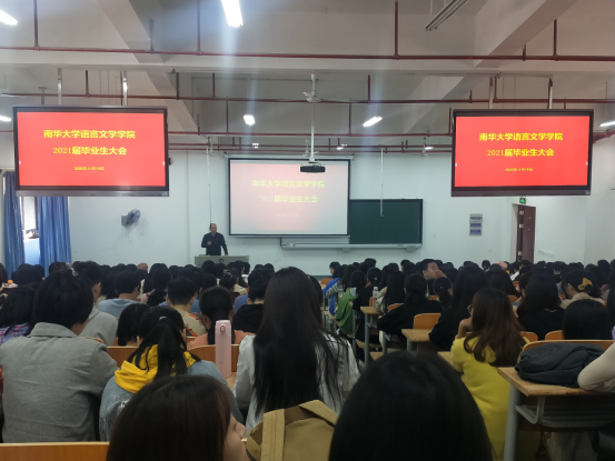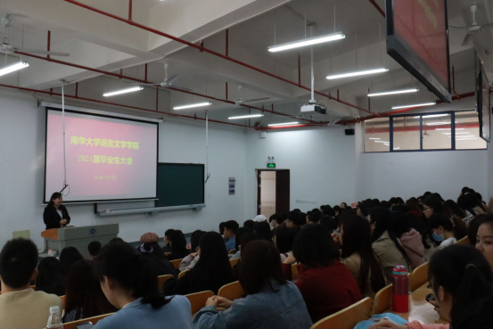 11月19日上午,beat365手机版官网入口2021届毕业生大会在雨母楼102顺利召开。公司党委副书记陈彬、英语系主任卢佳、翻译系主任朱向明、汉语言文学系主任甘斐哲、就业专干杜百知、辅导员周玲以及2017级全体本科生参加本次大会。