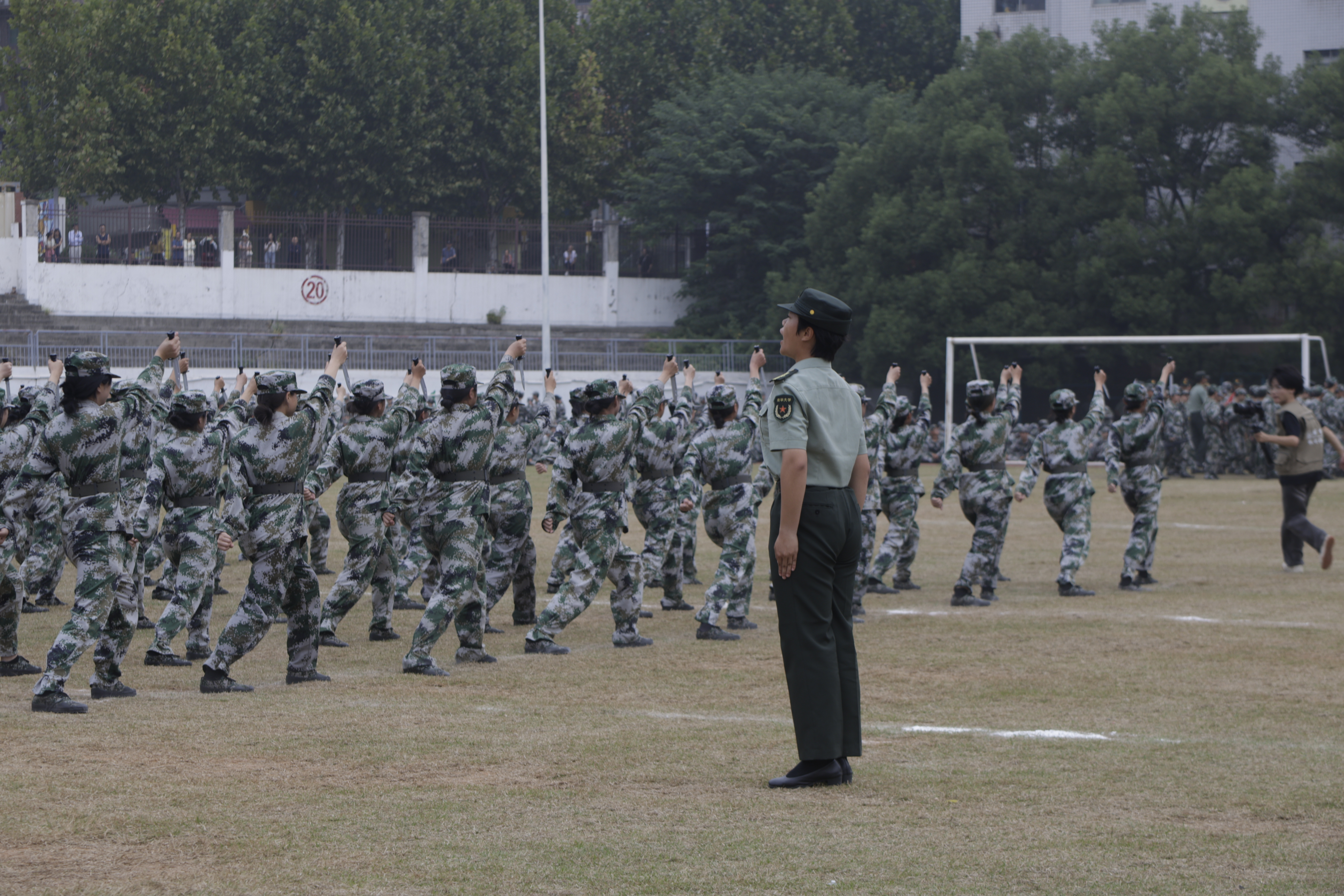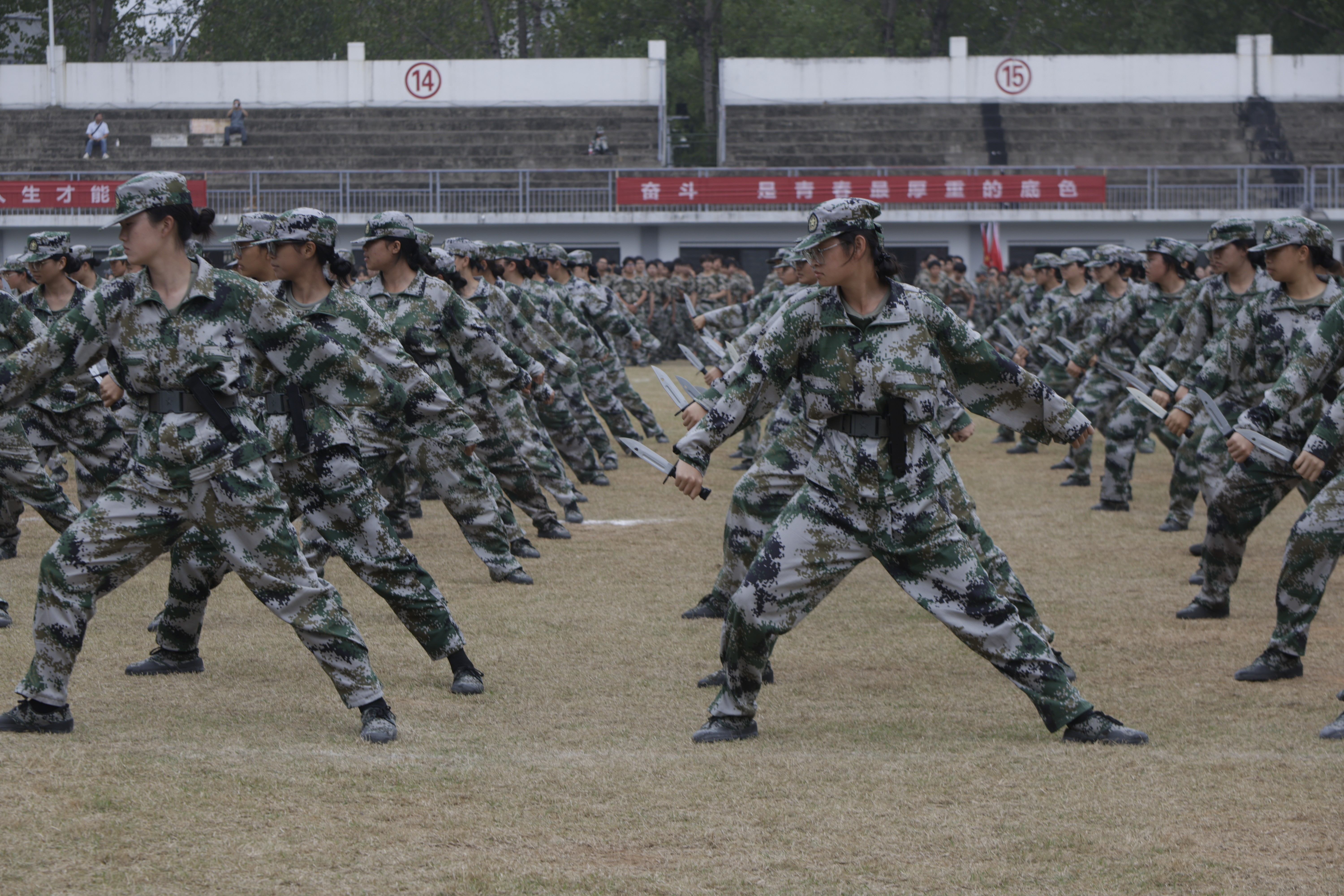 汇演中,多院混合军体拳表演,尽显学子刚强;beat365手机版官网入口240名女生组成的匕首操队伍更成亮点,一声声“杀”铿锵有力。她们化身“玫瑰利剑”,眼神坚毅如炬,动作凌厉果决,将柔美与力量完美融合,以飒爽英姿诠释新时代巾帼风采,成为汇演中最亮眼的青春符号。