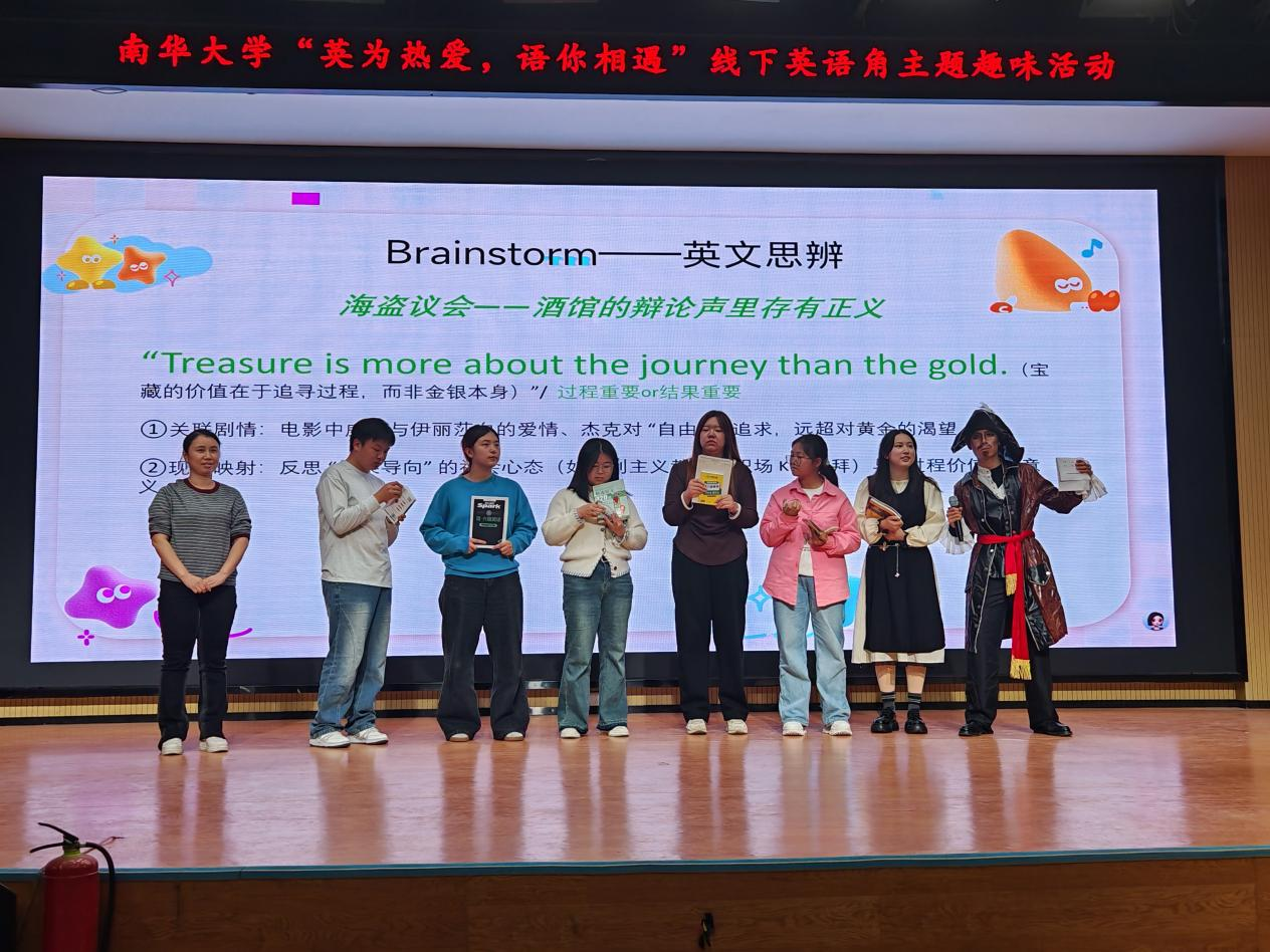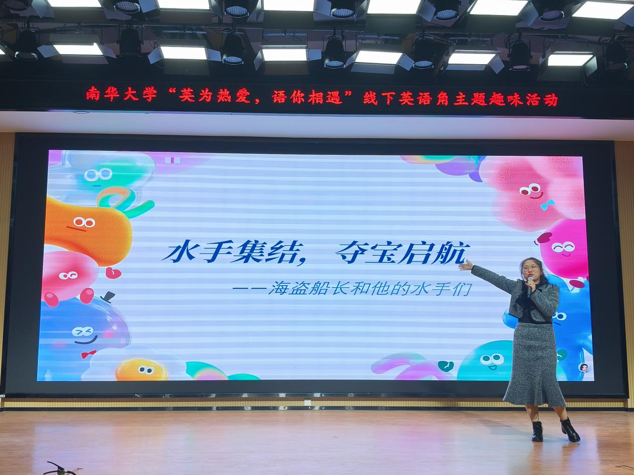 活动开场,主持人以两个问题引导交流,大家畅所欲言,热情轻松的气氛在现场弥漫开来。随后,肖玲慧老师上台致辞,宣布本次英语角活动主题——“水手集结,夺宝起航”。明确活动主题,点燃同学们的期待。