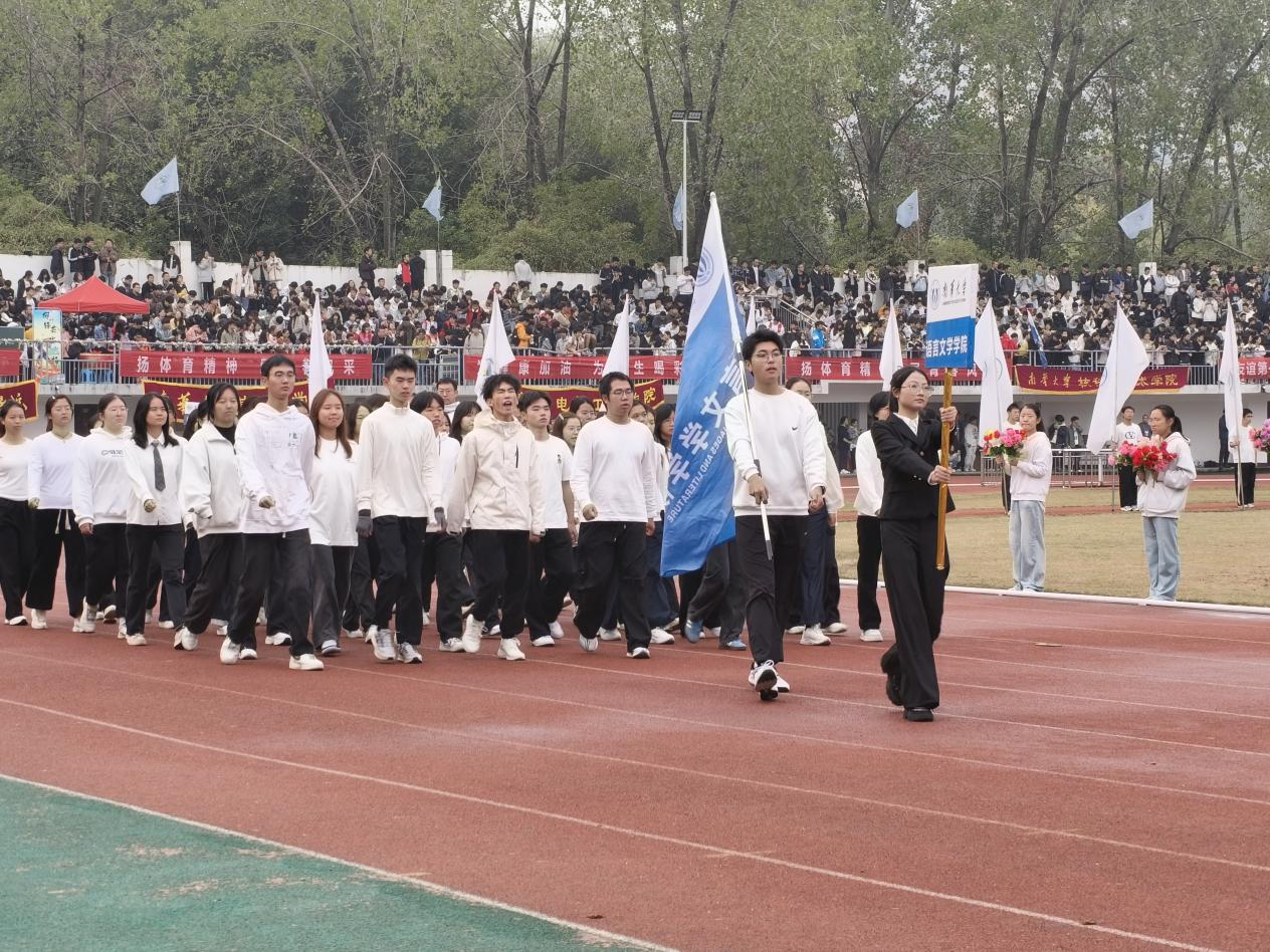 beat365手机版官网入口学子身着白衣黑裤的整齐服装,以饱满热情与昂扬姿态组成方阵亮相。伴随着音乐,他们迈着铿锵的步伐入场,精神抖擞、意气风发,嘹亮的“字里行间藏锐气,赛场内外展风华”口号回荡全场,彰显出文院学子文武兼修的精神风貌。方阵前方,蓝色院旗迎风飘扬,其上大字熠熠生辉,凝聚着全院师生的向心力,赢得现场观众阵阵喝彩。