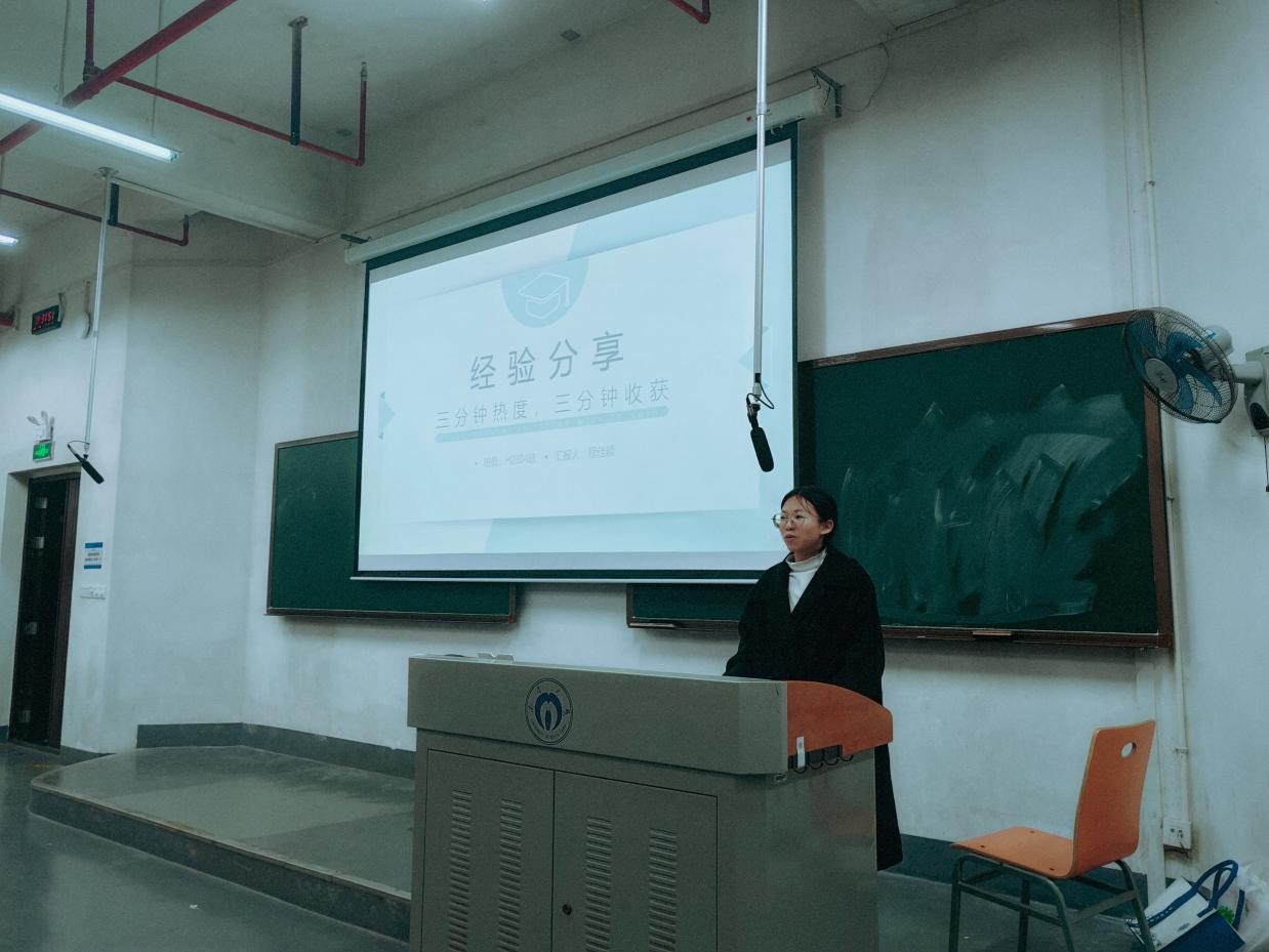活动伊始,程佳颖结合自身学业经历,从课堂效率提升、课外竞赛参与等方面展开分享,她详细讲解了如何结合自身制定科学的学习计划、平衡专业课与公司活动,并传授了专业学习中的实用技巧。“俗话说,三分钟热度也能有三分钟收获。”她以幽默的语言,表达自己的看法,缓解了现场氛围。杨惠羽则聚焦备考复习与答疑解惑两大板块,以“学会到会学”为切入点,深入剖析了备考中的常见误区,根据自身学习经验,给出了针对性的学习与考研建议。