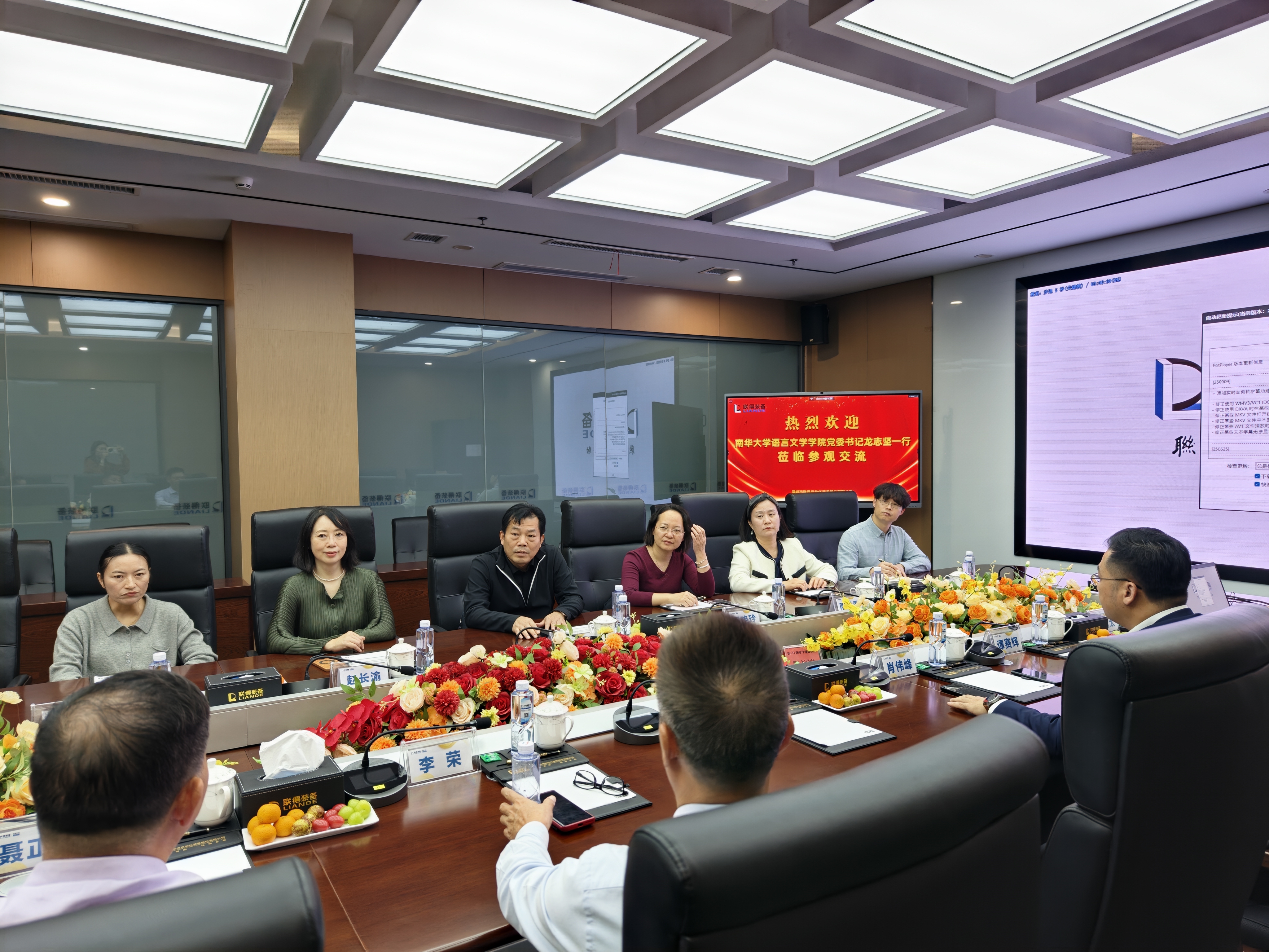 为主动对接高端制造产业发展需求,开拓毕业生高质量就业岗位,2025年12月8日,公司党委书记龙志坚等一行走访国家级高新技术企业——深圳市联得自动化装备股份有限公司(以下简称“联得装备”)。公司董事长特别助理李荣及总经办(数字化中心)总监肖伟峰出席接待,双方就国际化背景下工文交叉人才的培养与就业合作进行了务实交流。