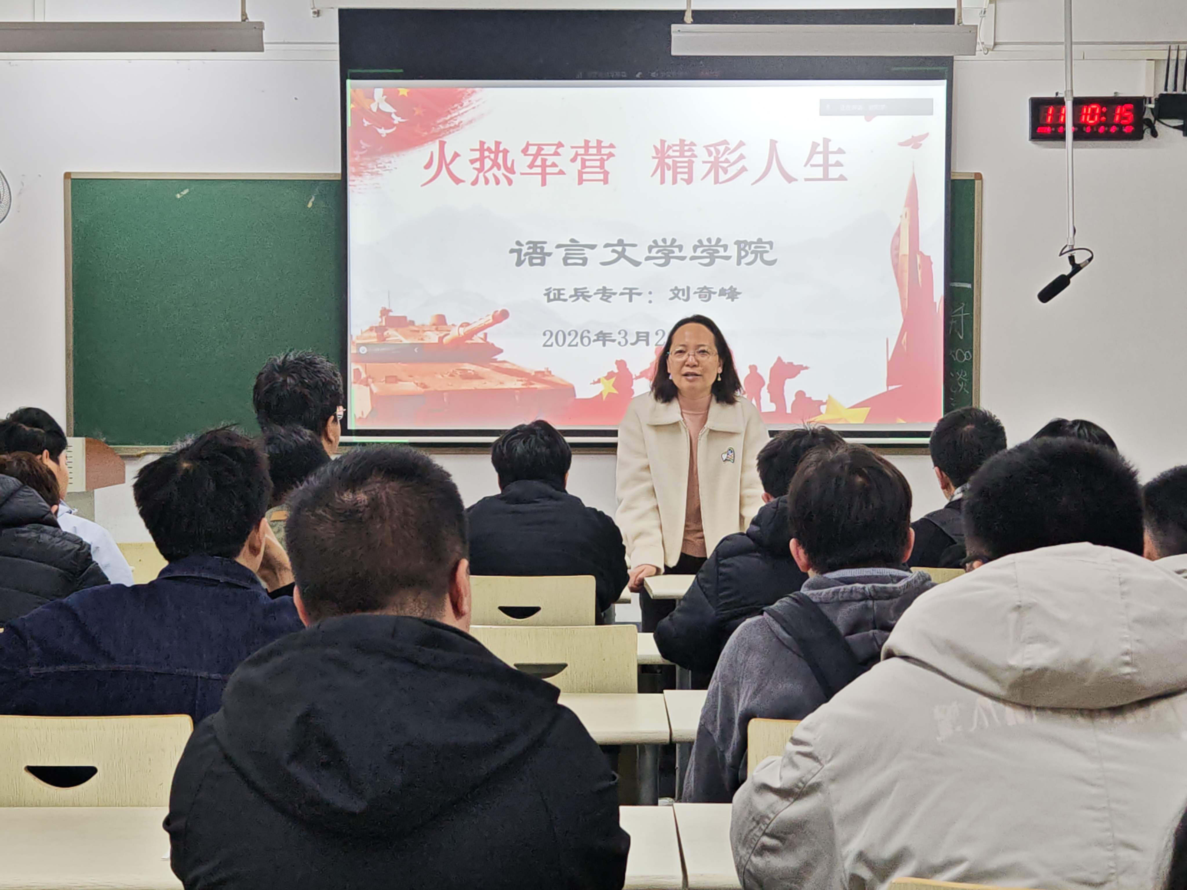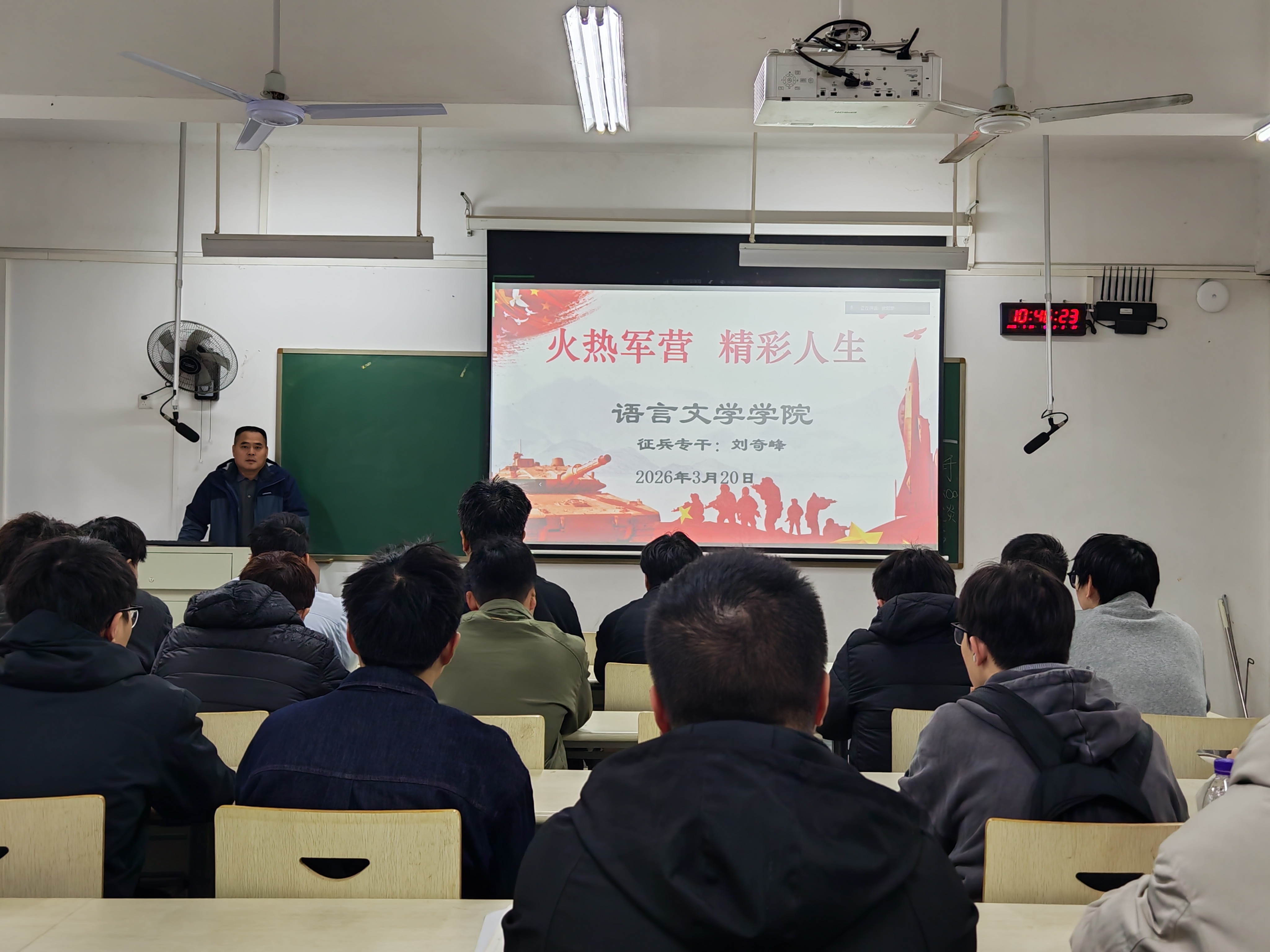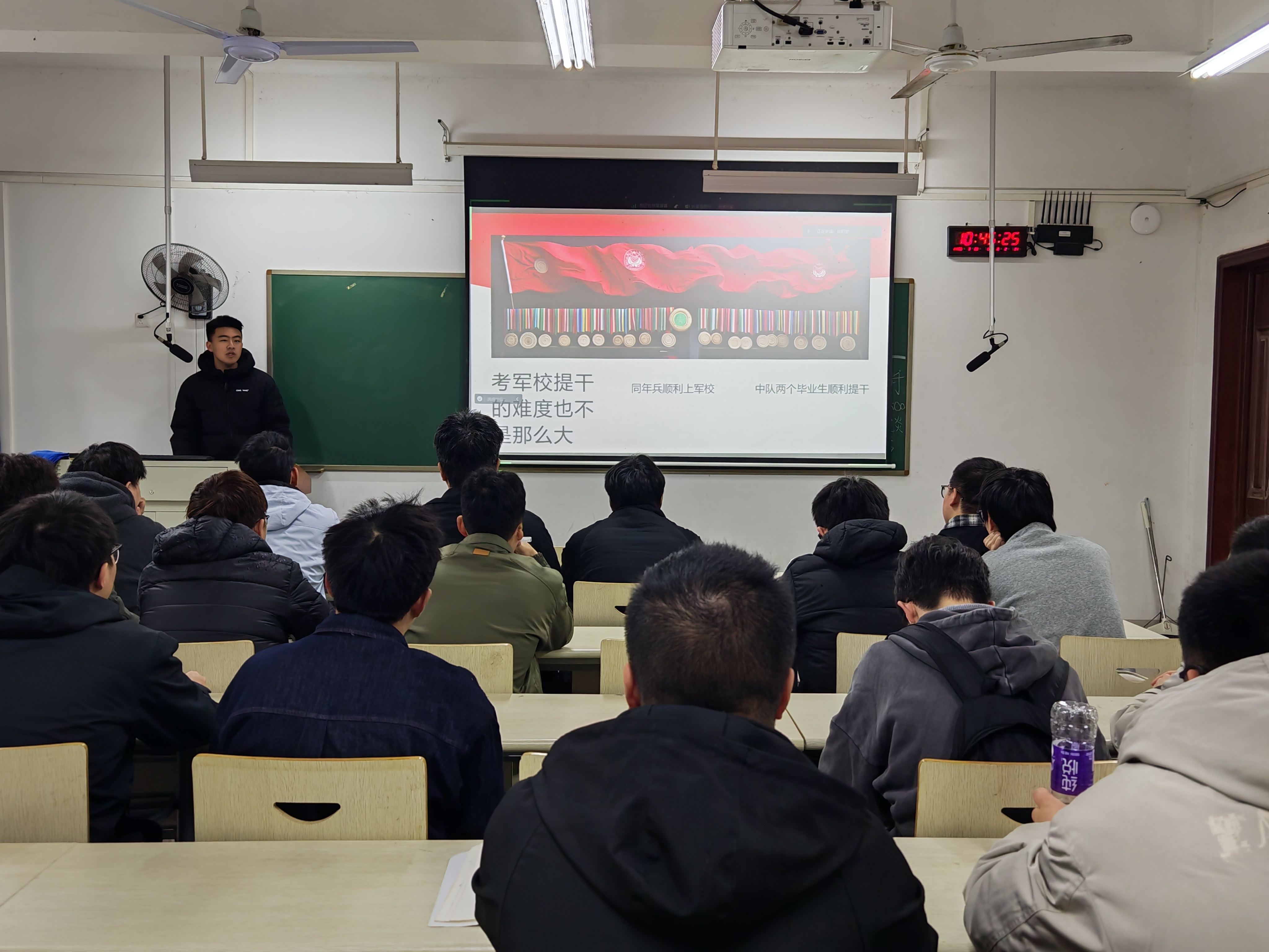 宣讲会上,2023级汉语言文学专业左喻亮率先分享军旅日常。他结合自身经历,从训练、学习、任务、生活等方面生动讲述军营点滴,让同学们真切感受军人的责任与担当,对军营生活有了更加直观、鲜活的认识。